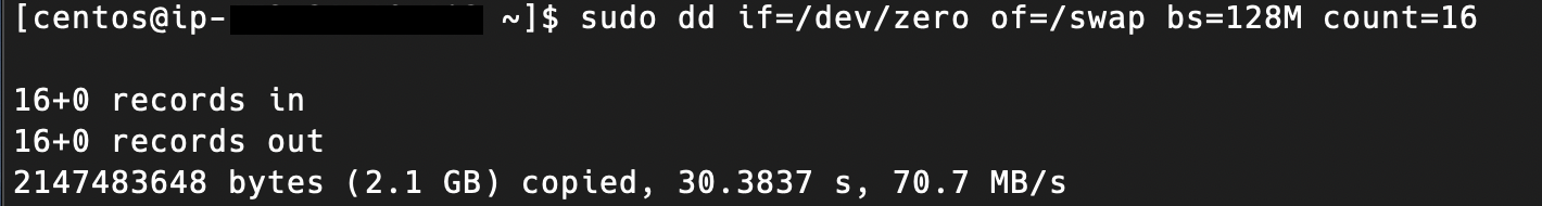 sudo dd if=/dev/zero of=/swap bs=128M count=16