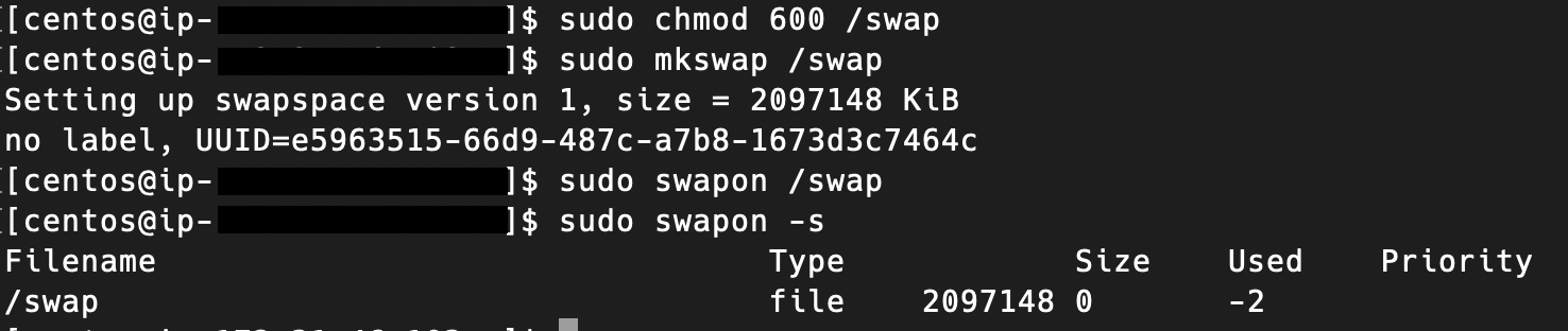 sudo chmod 600 /swap sudo mkswap /swap