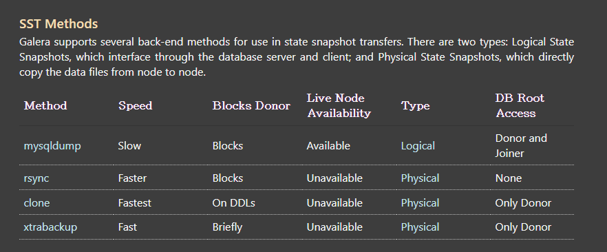 SST 방식은 Donor 노드에 있는 데이터 전체를 스냅샷상태로 복사하여 Joiner 노드로 복사합니다.