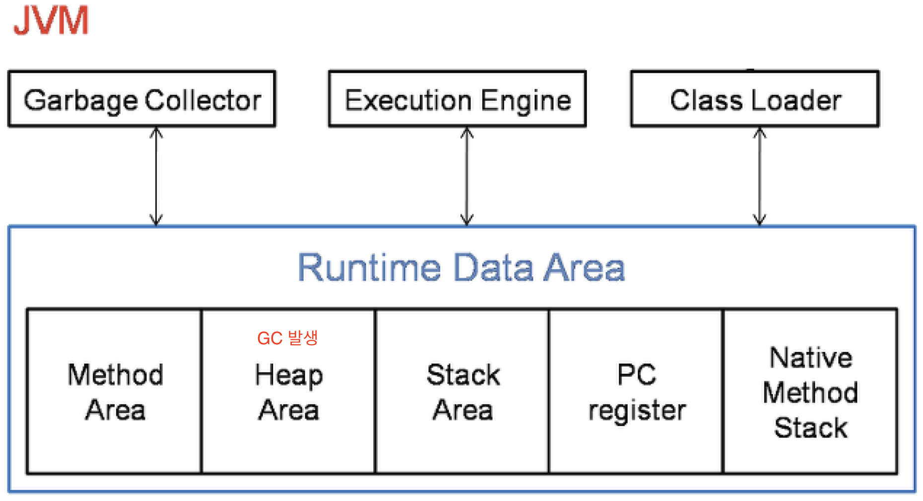 위의 JVM 메모리 구조 중 GC가 유일하게 관여하는 공간은 **[Heap Area]**입니다.