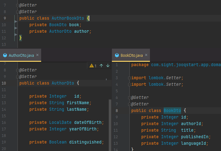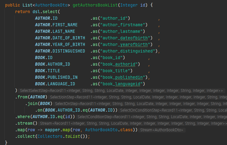 jooq의 불편한 점은 select 할때마다 해당 부분을 dto 클래스로 만들어줘야하는데요.