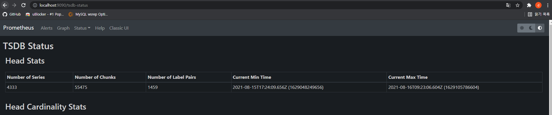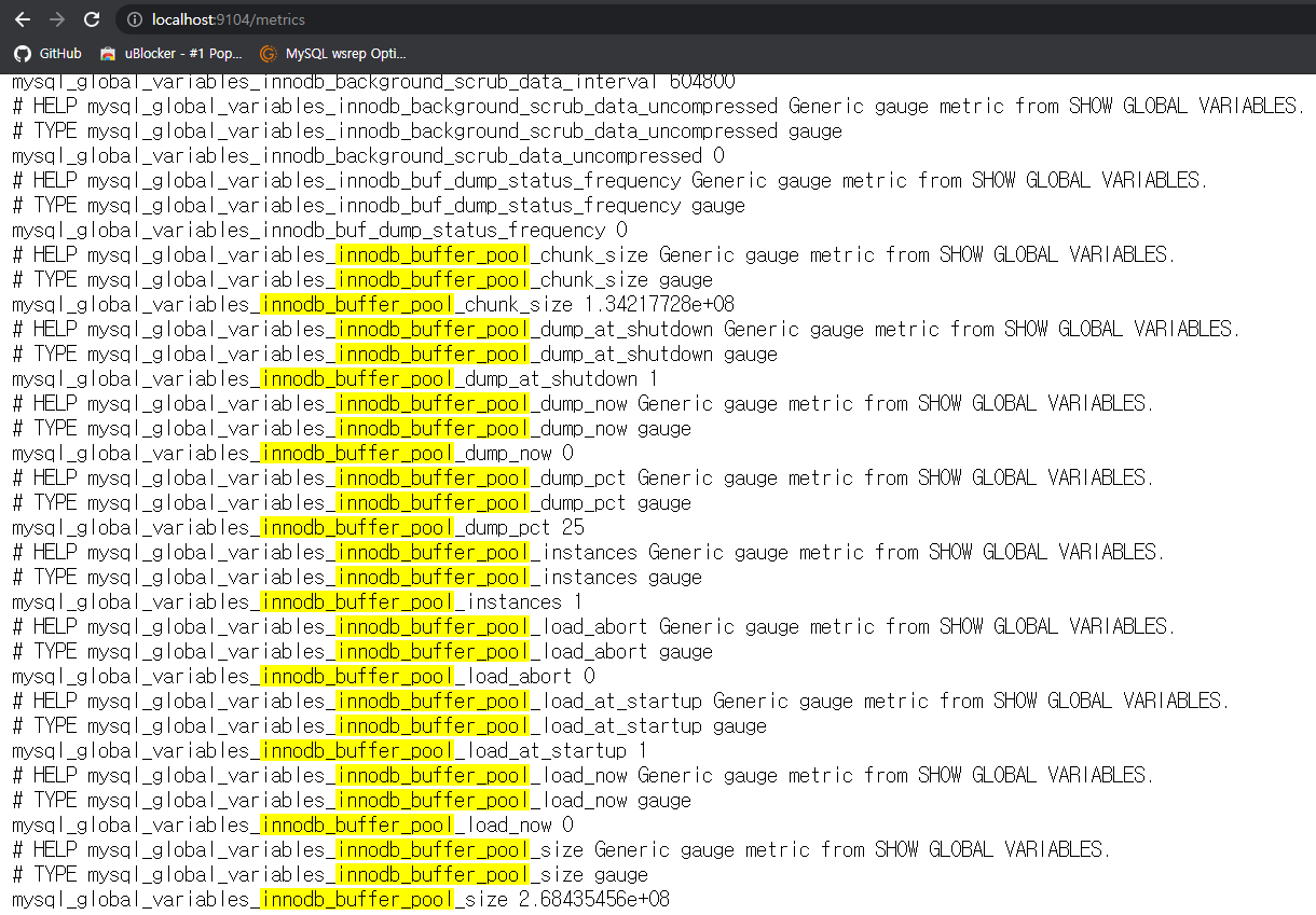 아래와 같이 프로메테우스가 읽을 수 있는 메트릭 형태로 응답을 내려줍니다.