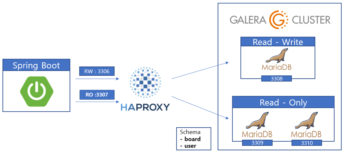 Spring Boot 서버는 HAProxy를 통해 DB에 접근하게 됩니다.