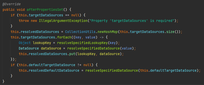 이 부분은 AbstractRoutingDataSource 의 내부 코드를 보면 알 수 있는데요