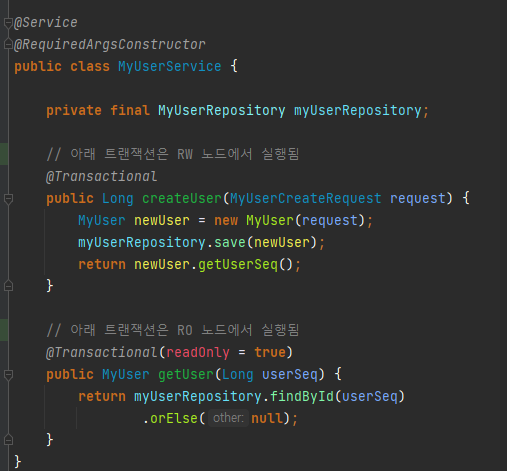 RW / RO 별로 데이터소스를 만들어 개발자가 이를 인지하며 개발을 하거나