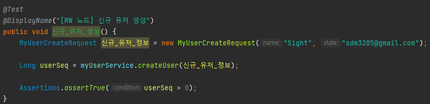 테스트 1. 신규 유저 생성