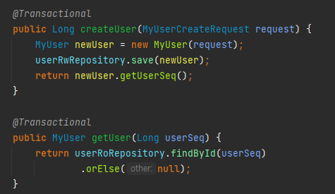 다음과 같이 readOnly 속성으로만 분산 DB를 분기처리 할 수 있습니다.