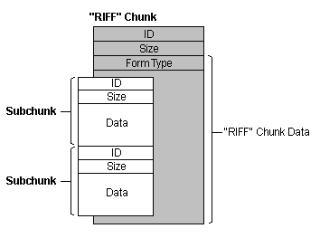 RIFF는 청크(chunk)라는 블록들이 트리 형태의 구조로 이루어져 있습니다.