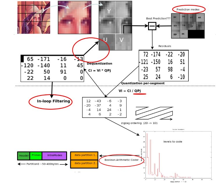 위의 손실 압축단계에서 설명한 VP8 Intra Prediction과 비슷한 역할을 합니다.