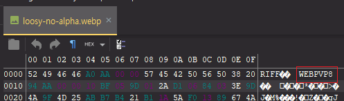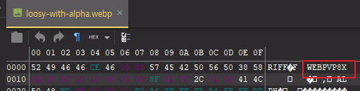 (손실 압축에서 webp는 알파채널을 지원하기 위해 확장된 webp 포맷[VP8X] 형태를 사용합니다. [문서])
