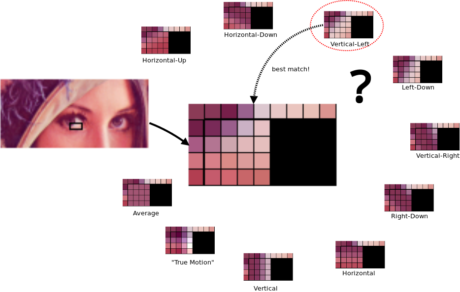 prediction을 합니다. 이 prediction에는 아래의 4가지 방식이 혼용되어 블록에 적용됩니다.