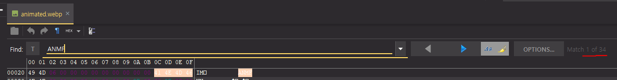 (예시: 위의 사진은 ANIM과 ANMF 사이 값 중 뒤에 4바이트가 모두 0이기 때문에 무한반복입니다.)