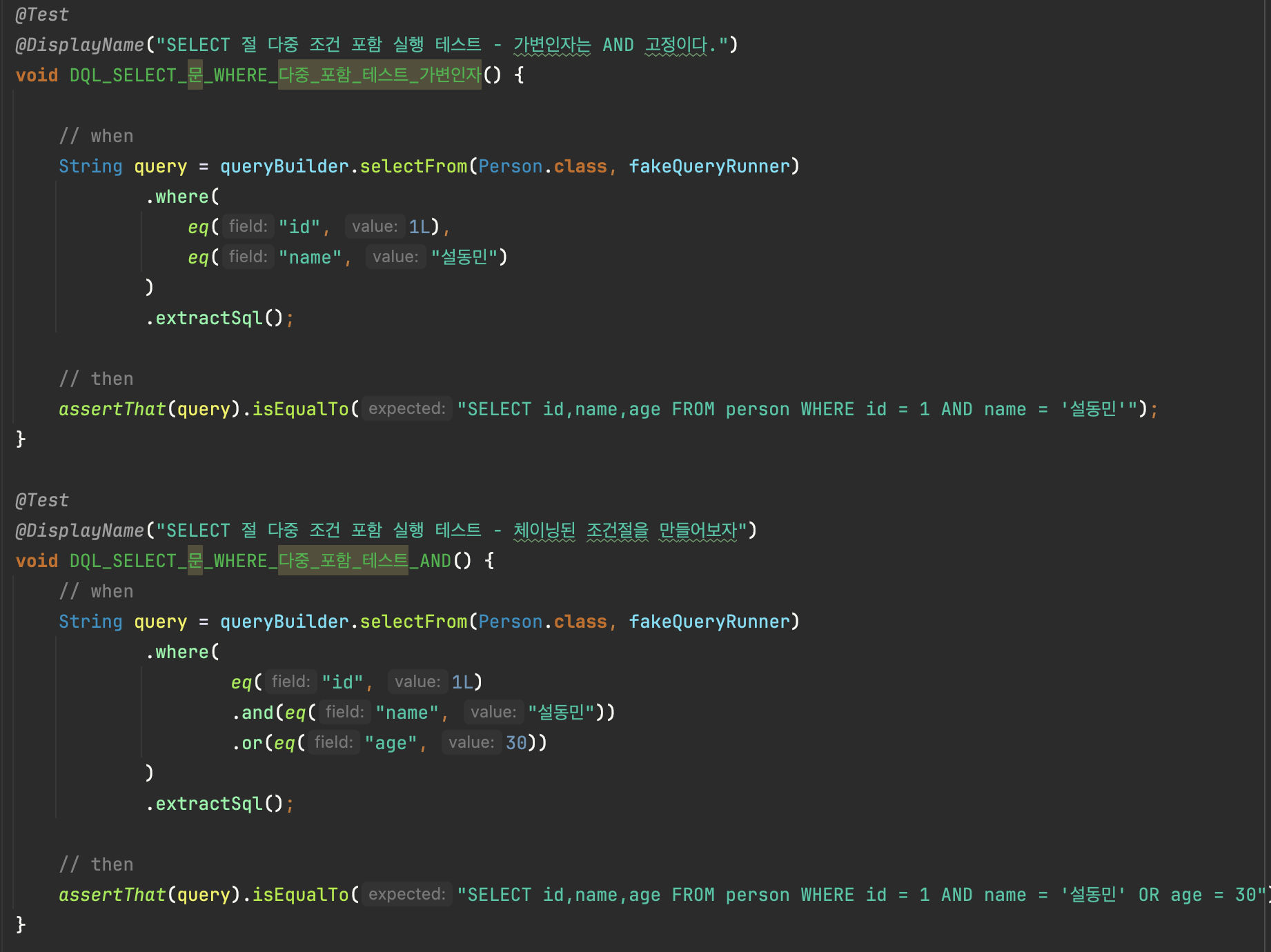 코드 제너레이션 없이 DSL기반의 쿼리빌더를 만들기 어렵다는걸 느꼈습니다.